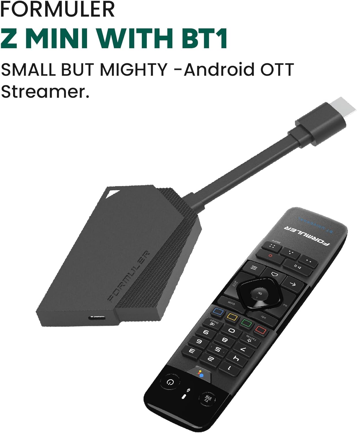 Formuler Z Mini plus O2F9 Smart Learning Remote Control plus 6 in 1multifunction Charger Output Resolution: 4K (3840 x 2160) CPU: RealTek RTD1325 GPU: Mali-G57 MC1 RAM: 2GB LPDDR4 @2400MHz Storage: 8GB eMMC Operating System: Android 12