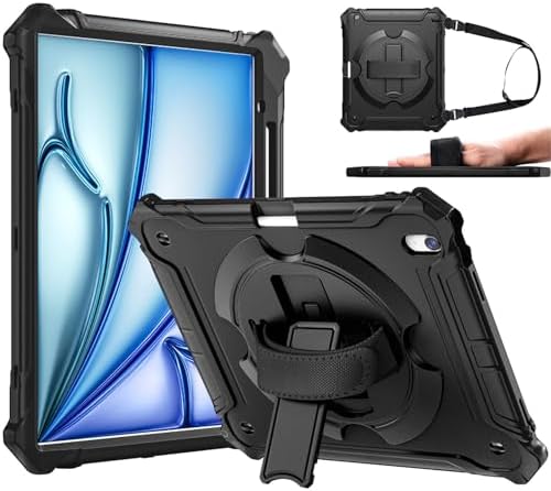 ZtotopCases for New iPad Air 13 inch Case (M3 2025/M2 2024) with Pencil Holder, Shockproof Full Body Drop Protective Cover with 360° Rotating Hand Strap & Stand, Black