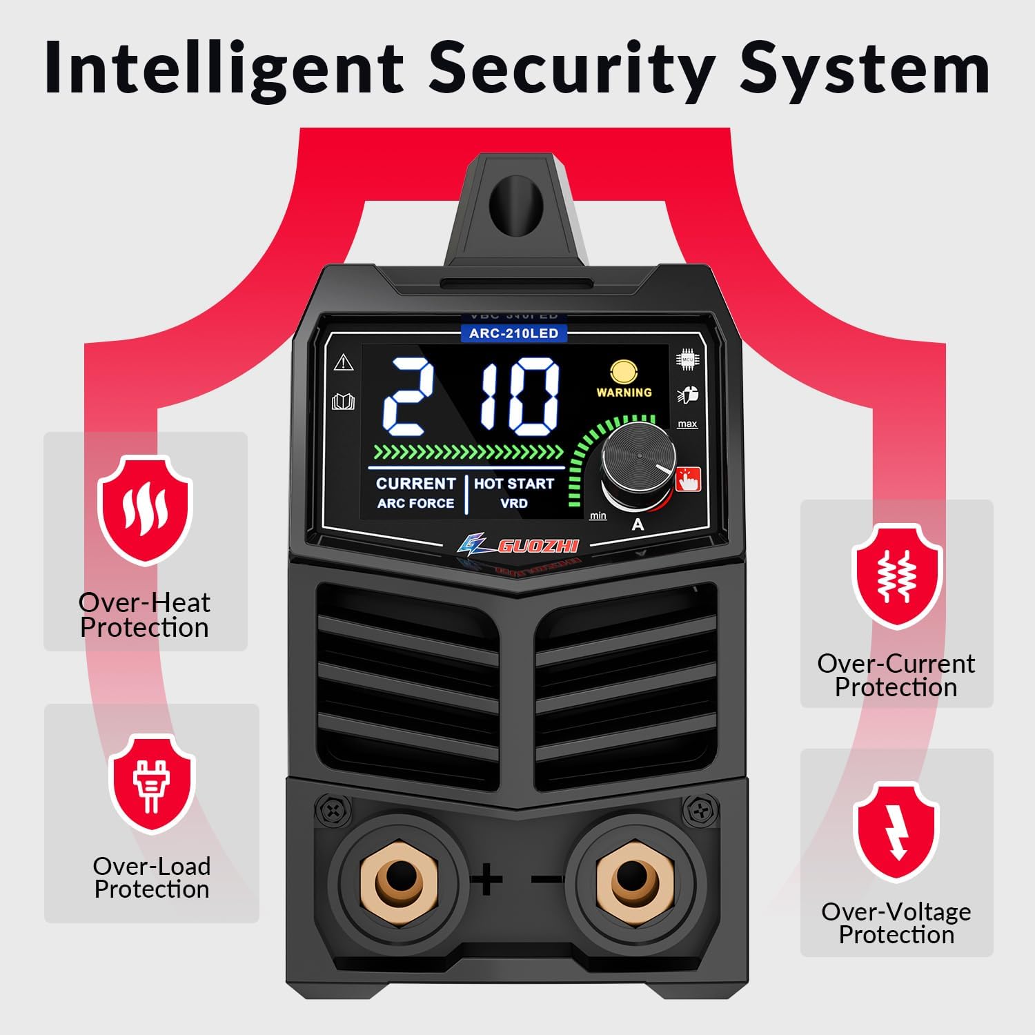 GZ GUOZHI Stick Welder 210Amp Large LED Display Digital Inverter IGBT Welding Machine,110V/220V Dual Voltage Hot Start Portable MMA ARC Welder Machine