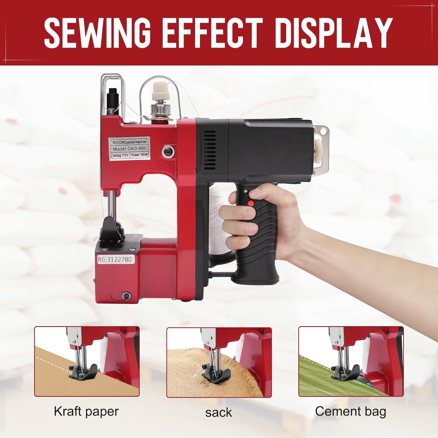 Portable Bag Sewing Machine, GK9-890 Bag Closing Machine, Woven Bag Closer Packing Machine, Handheld Bag Closer Closing Stitcher for Rice Woven Leather Snakeskin Bag Sack