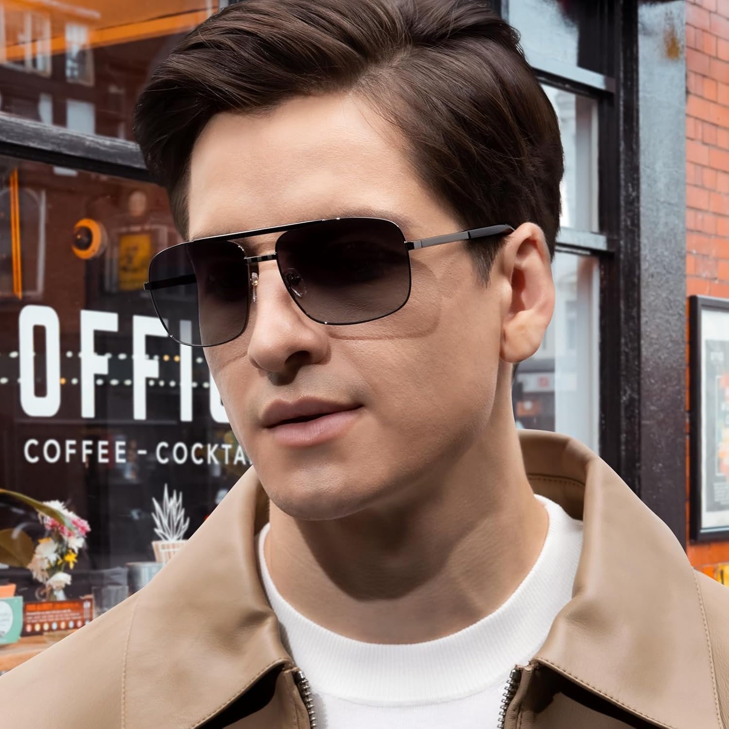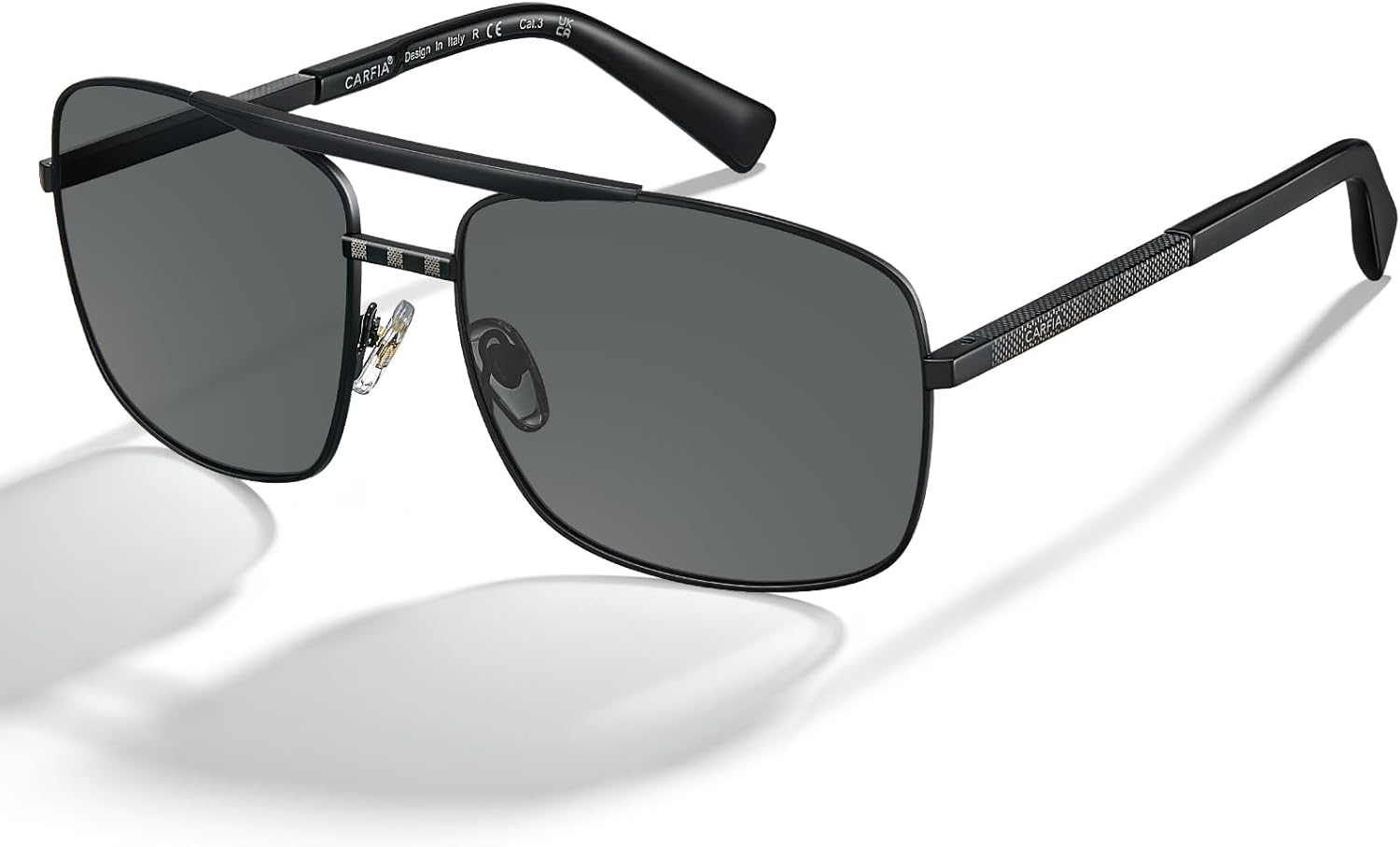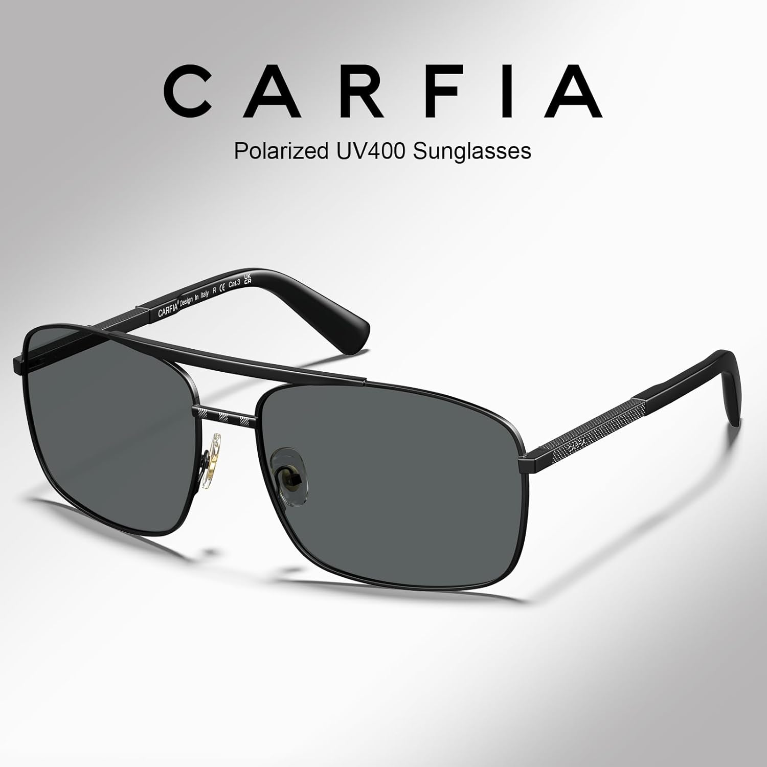 CARFIA Pilot Polarized Sunglasses for Men UV Protection Classic Double Bridge Anti-Glare Driving Shades with Spring Hinges