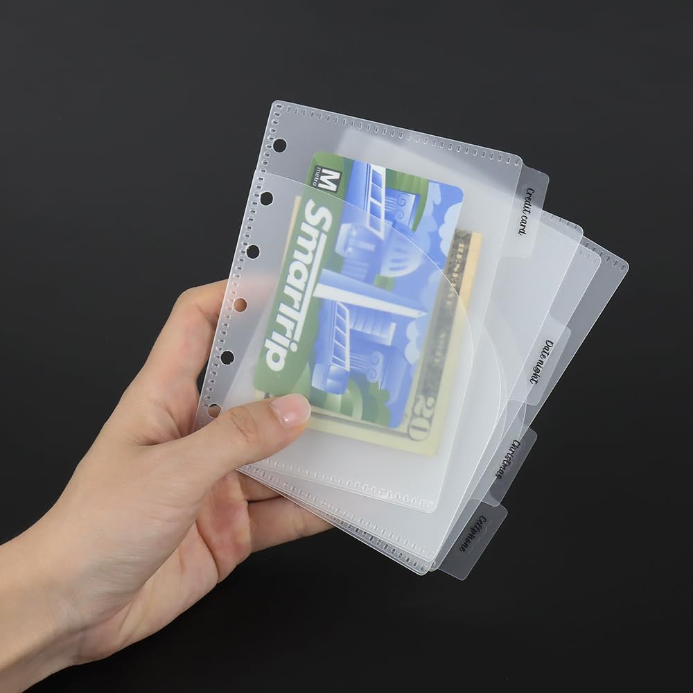 A7 binder divider pocket is made of thick PP material, with reusable performance, 6 holes punched for easy inserting to standard A7 loose leaf binders and can reduce frequent replacement;