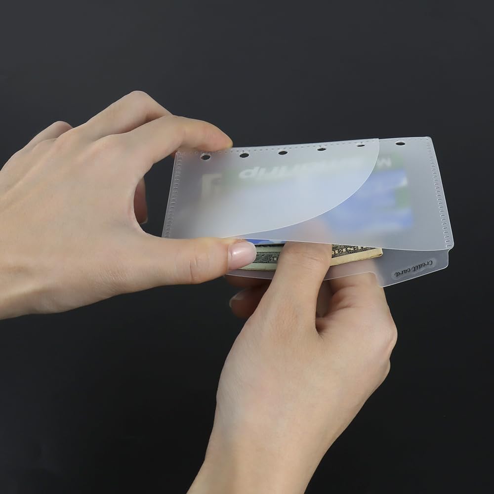 Frosted binder pocket size is 99mm x 125mm (3.9" x 4.92") can hold 3.3"x4.57" sheet, suitable for 6-hole punched A7 binders, lightweight and easy to carry;