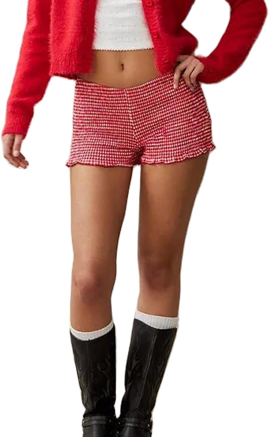 NUFIWI Women Gingham Boy Shorts Smocked Plaid Bloomers Cute Frill Ruffle Sexy Micro Shorts Bottoms Y2k Pettipants