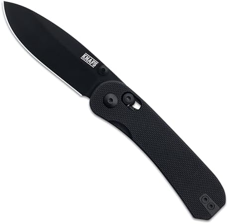 Knafs - Lander 3 Folding Pocket Knife with Clip - EDC for Men, Women, Everyone - Black Stonewash Blade - Black G10- Handle