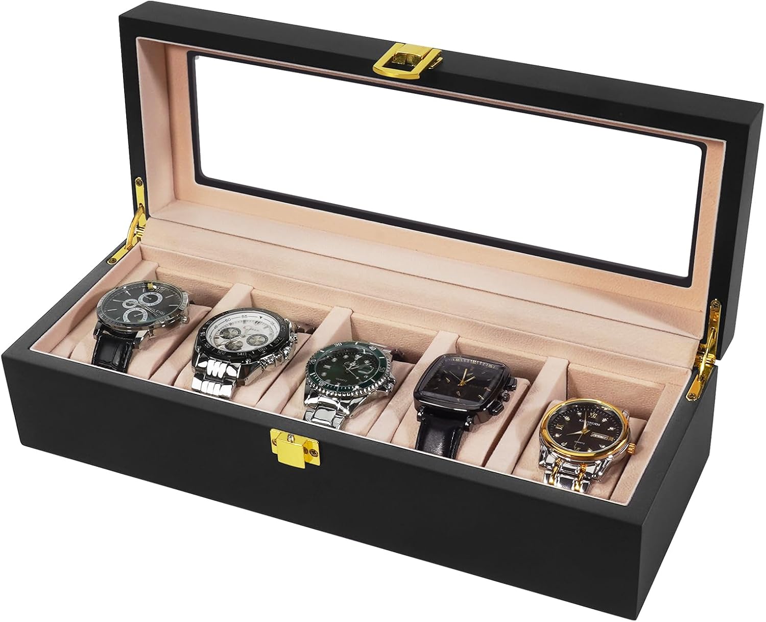 Real clear glass lid -- The window of our watch case is made of real glass, which does not oxidize or discolor. Therefore, the window of watch display case can keep clear and bright for a long time and easy to clean. All your watches will display perfectly.