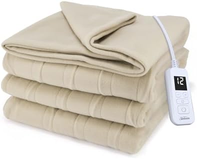 Sunbeam Royal Ultra Fleece Heated Electric Blanket Full Size, 84" x 72", 12 Heat Settings, 12-Hour Selectable Auto Shut-Off, Fast Heating, Machine Washable, Warm and Cozy, Pebble