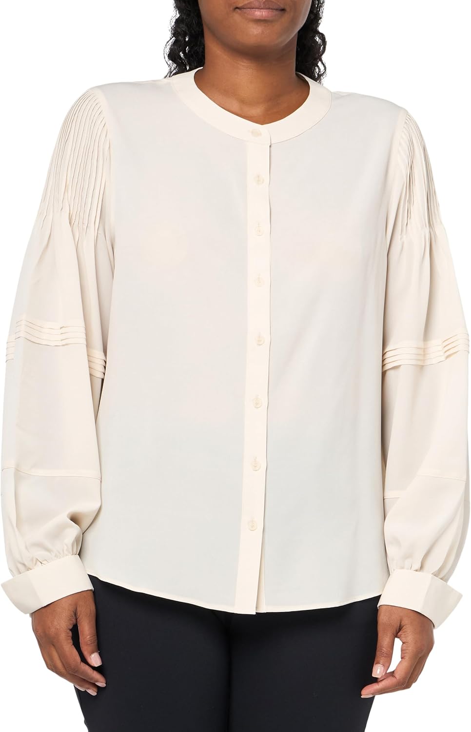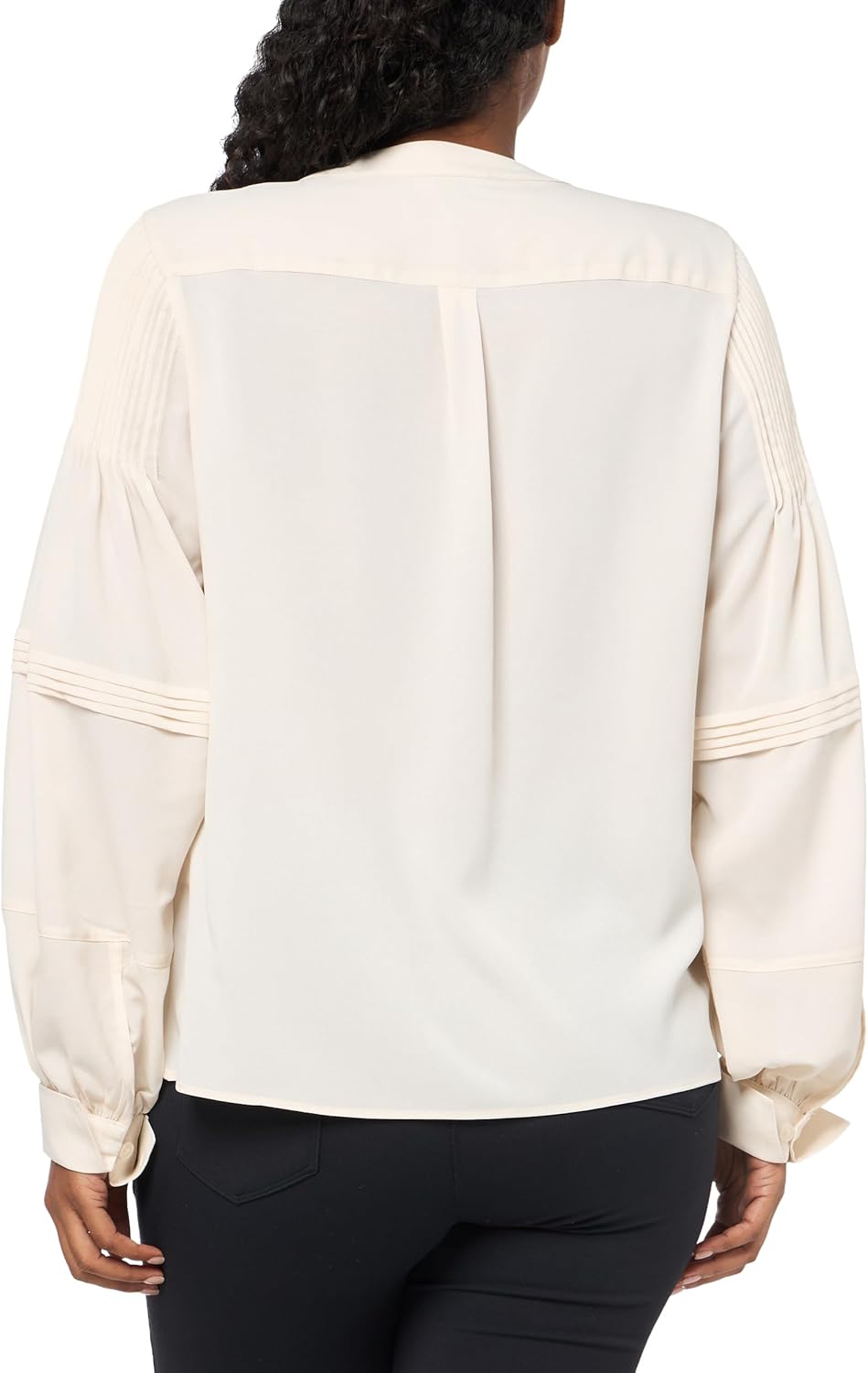 This Tommy Hilfiger Women's Sportswear Top is a Long sleeve band collar button up blouse with pleated sleeve