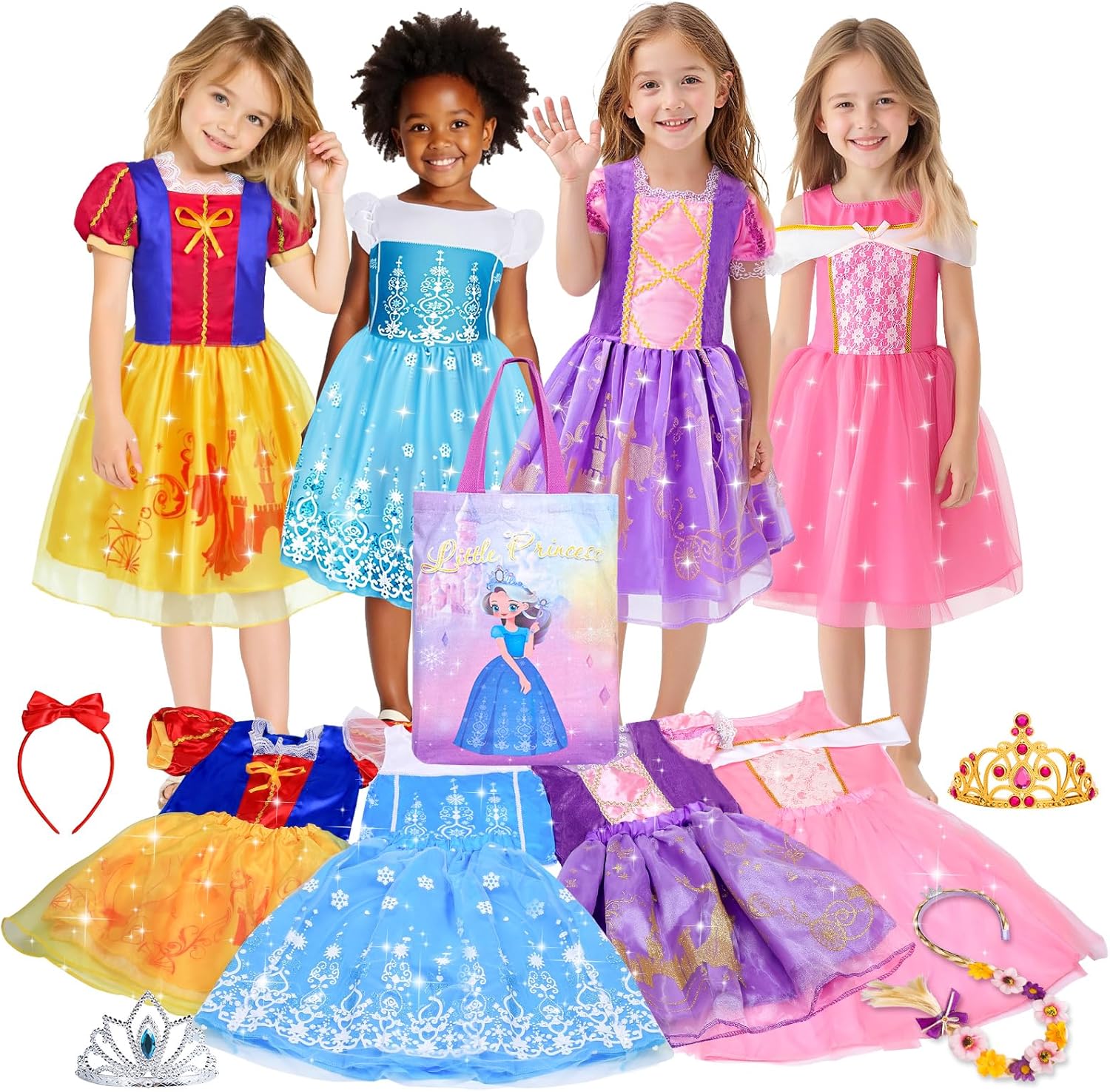 Vestir a la Princesa Meland - Vestidos de Princesa para Niñas con Juguetes de Princesa, Ropa de Vestir para Niñas Pequenas para Jugar a Fingir