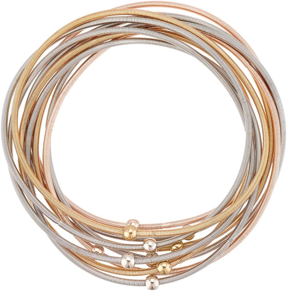 PH PandaHall 10pcs 3 Colors Guitar String Bracelet, Stainless Steel Multi Strand Stackable Stretch Bracelets Adjustable Layered Bangles Bohemian Boho Bracelets for Music Lovers Jewelry Gifts