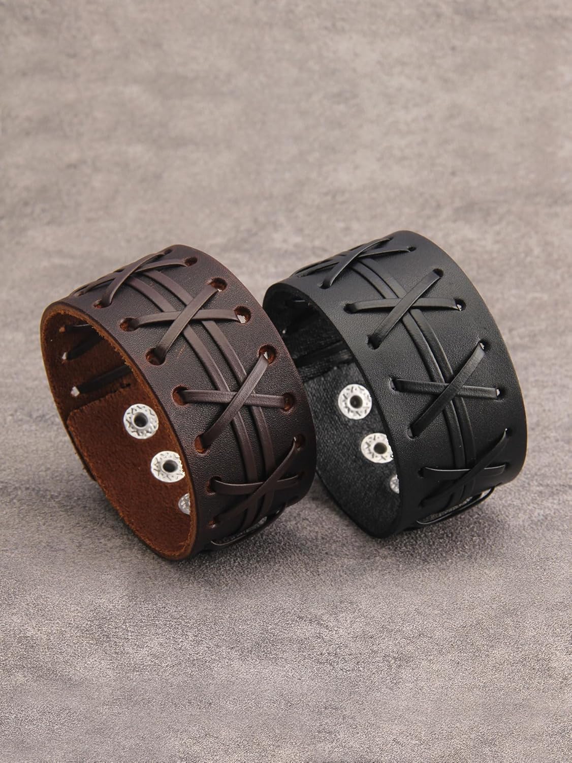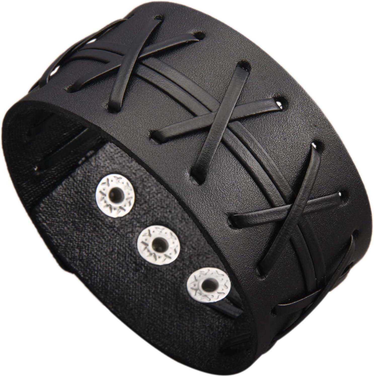 GelConnie Leather Cuff Bracelet Punk Braided Bracelets Rock Leather Wristbands Faux Mens Leather Bracelet Gothic Viking Bangle Adjustable Wrap Bracelet for Women,Men