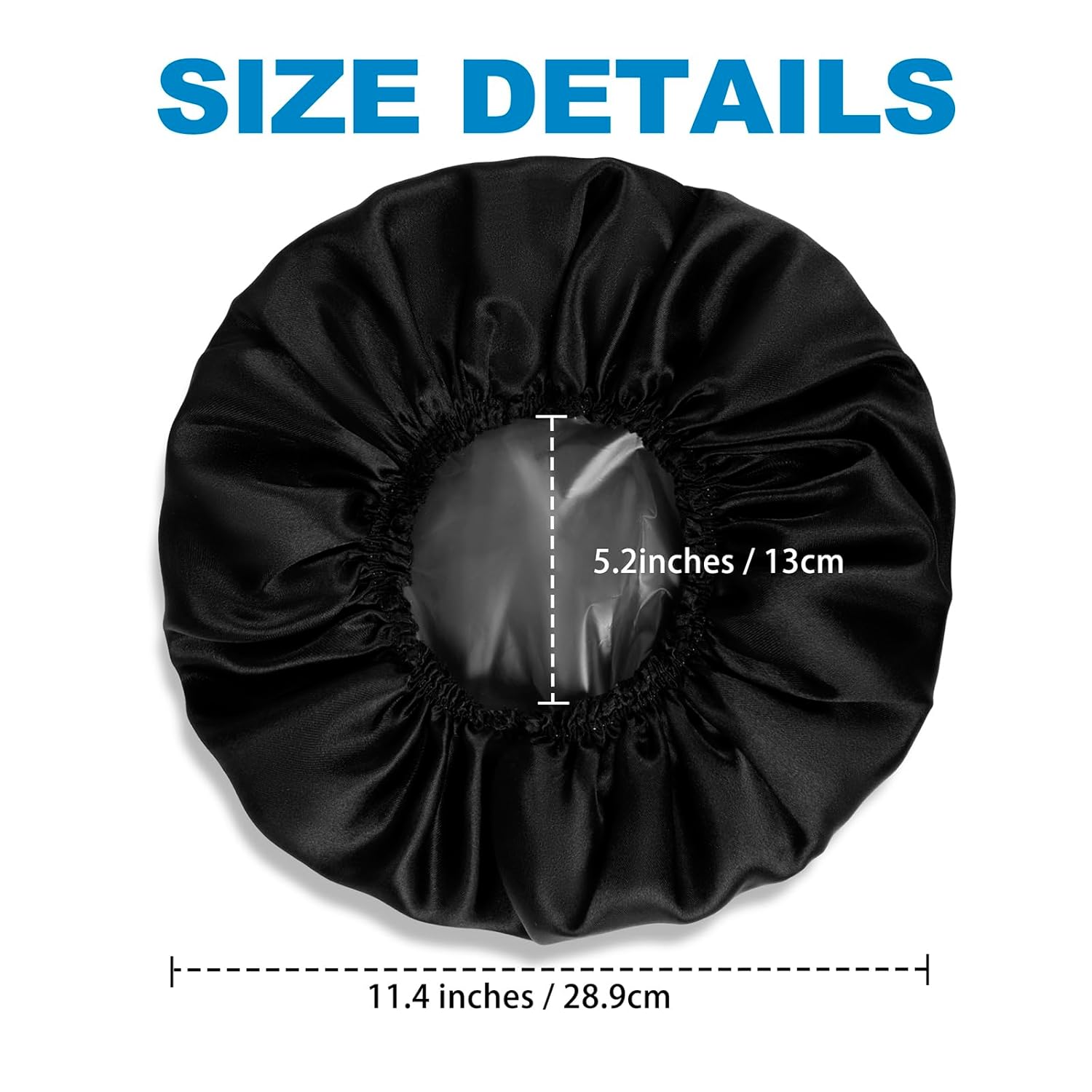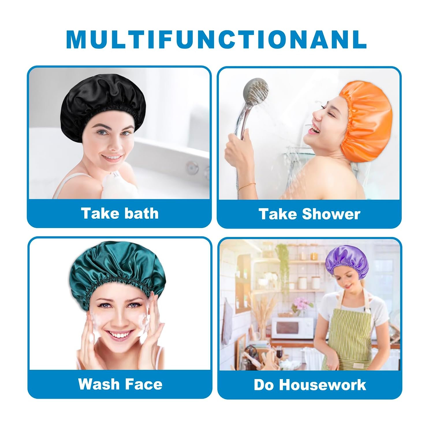 2 LAYERS WATERPROOF SHOWER CAPS FOR WOMEN - Our hair bath cap features a silky polyester surface and a waterproof PEVA inner layer - You can use it inside out to make sure a good waterproof function as well as to protect your hair. Our double layers shower cap is a great shower partner to keep your hair dry when you taking shower or bath.
