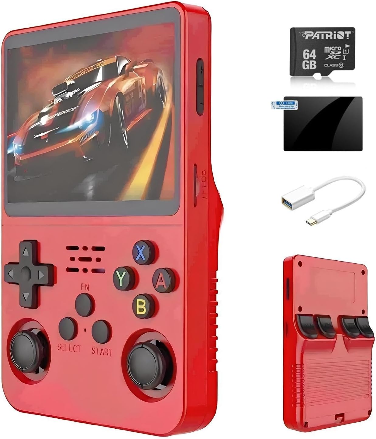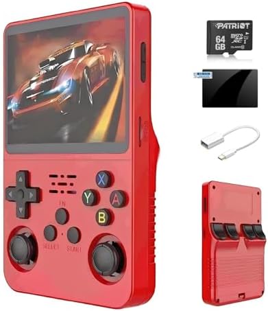 r36s Retro Handheld Game Console preloaded 15000+ Games/ 12+ emulators, Portable Retro Gaming Console 3.5 inch IPS Screen (red-64G)