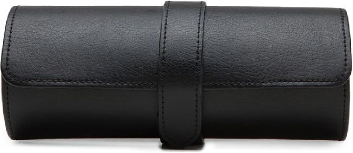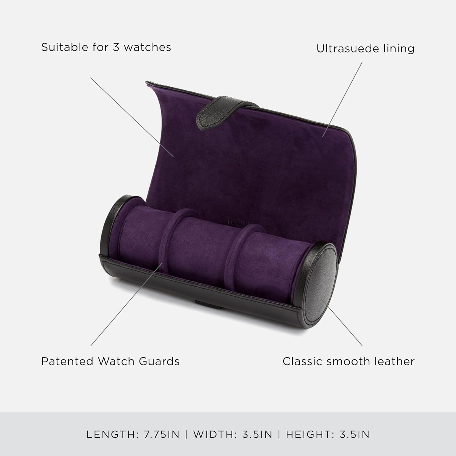 WOLF Blake Watch Roll with Capsule, Black - Holds Up to Three Watches - Smooth Leather, Ultra-Suede Lining, Snap Closure - Includes Two Watch Guards