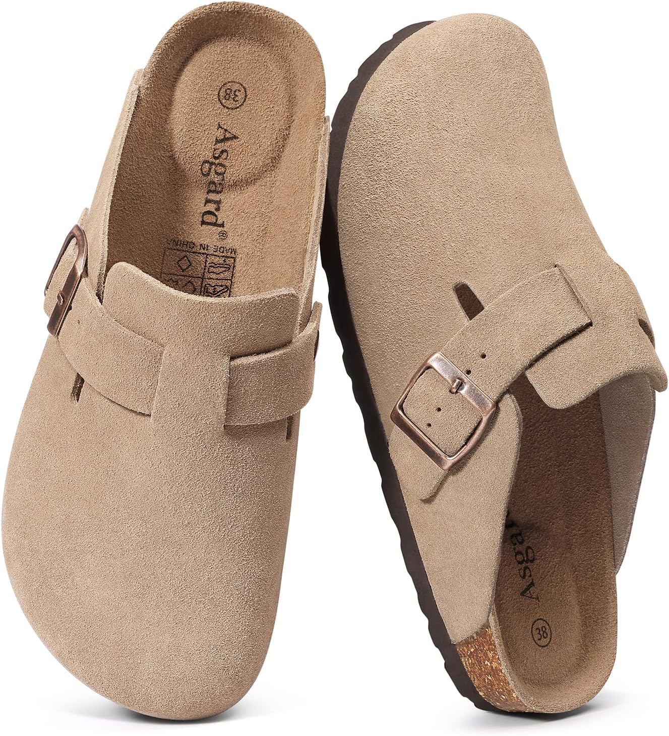 Asgard Genuine Suede Clogs for Women Men Leather Mules Arch Support Potato Shoes with Comfort Cork Footbed
