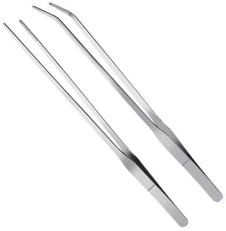 Long Handle Stainless Steel Straight and Curved Tweezers Nippers 2pcs for Garden, Kitchen, Aquarium Fish Tank, Indoors and Outdoors
