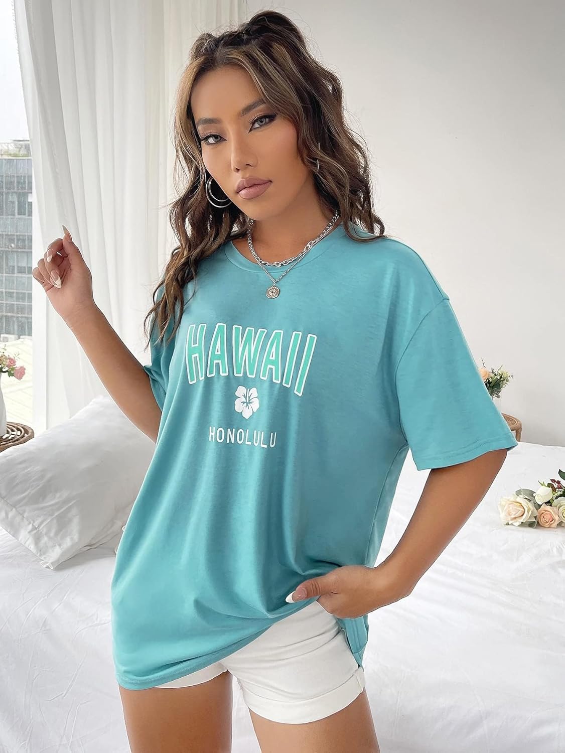 SOLY HUX Women's Oversized T Shirts Letter Print Casual Summer Tops Graphic Tees for Women