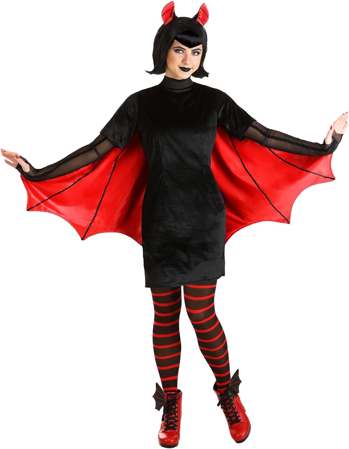 Deluxe Hotel Transylvania Mavis Women's Costume, Black & Red Vampiress Dress for Adults, Vampire Cosplay with Wig