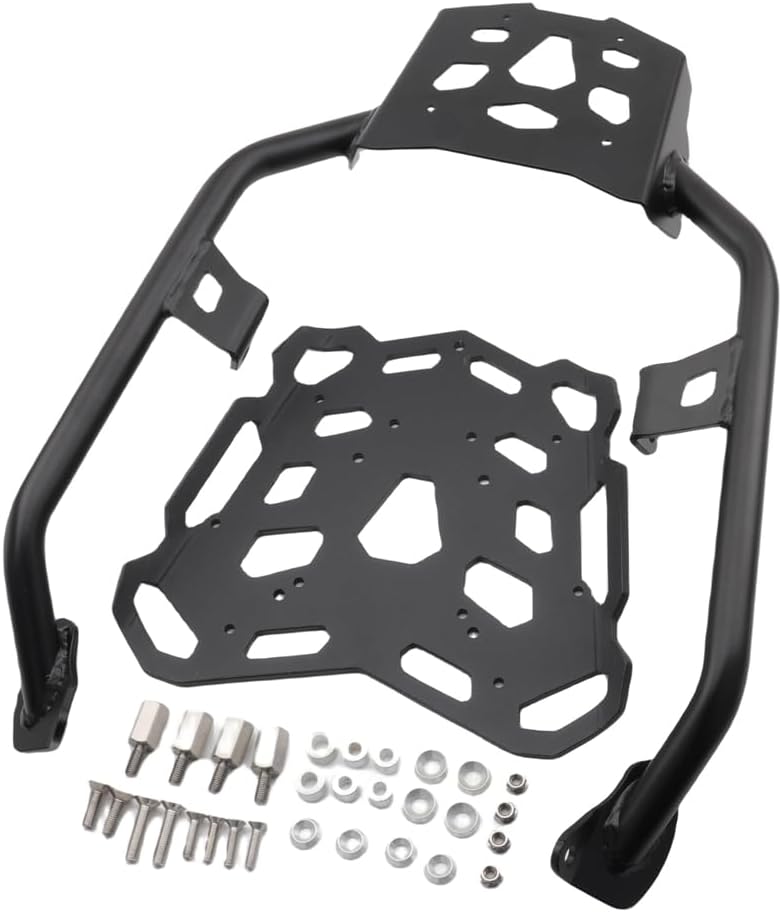 Item Name: Motorcycle rear cargo rack bracket for XT700Z 19-24 Material: The tail storage racks adapter is made of premium Aluminum alloy + Steel, high precision, stable characteristics and high reliability. Color: Powder coated black Fitment : Trunk Top Box Carrier Bracket Plate Kit for Tenere 700 XTZ700 T700 2019 2020 2021 2022 2023 2024 Package List: 1 Piece * Rear Luggage Extended Shelf Saddlebag Support Holder Features: Improve the safety of the rear seats to prevent the passengers from falling and causing injuries when suddenly accelerating as well carry more stuff. The hollow design of the rear seat frame increases the beauty while providing multiple fixed points. Meet mounting different items. The shape of the storage rack carrier fits the rear line of the XTZ 700. Strengthening the rear of your Tenere700, acts like a rear crash bar. Our Service: If you receive item damaged, defective,not as describe or wrong one, please email us pictures within 72 hours, we will do our best to help you to solve the problem!