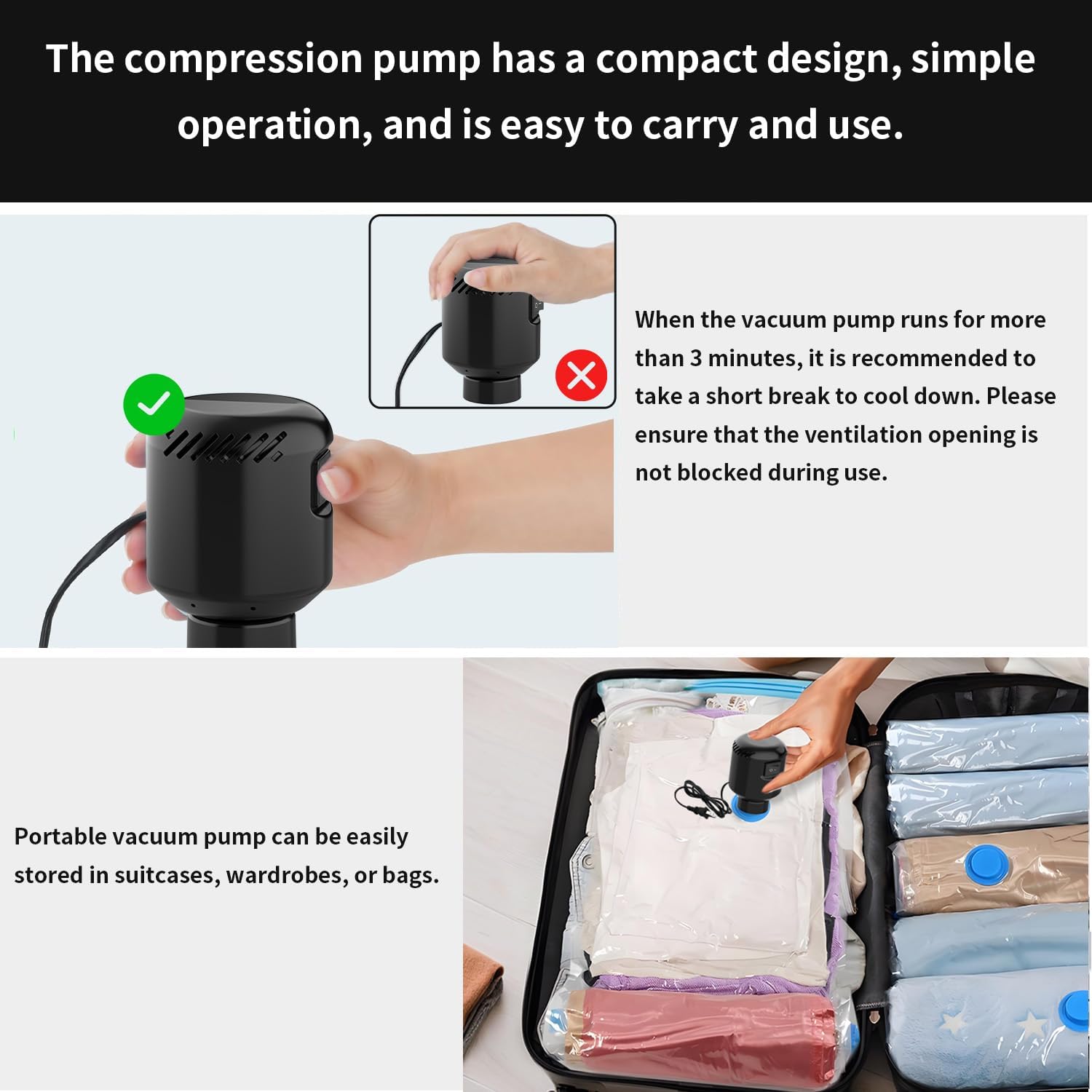 Electric Pump for Vacuum Storage Bags, Air Pump Storage Bags,Portable Vacuum Pump for Various Vacuum Sealer Bags, Suitable for Common Vacuum Bags-Black (No storage bags)