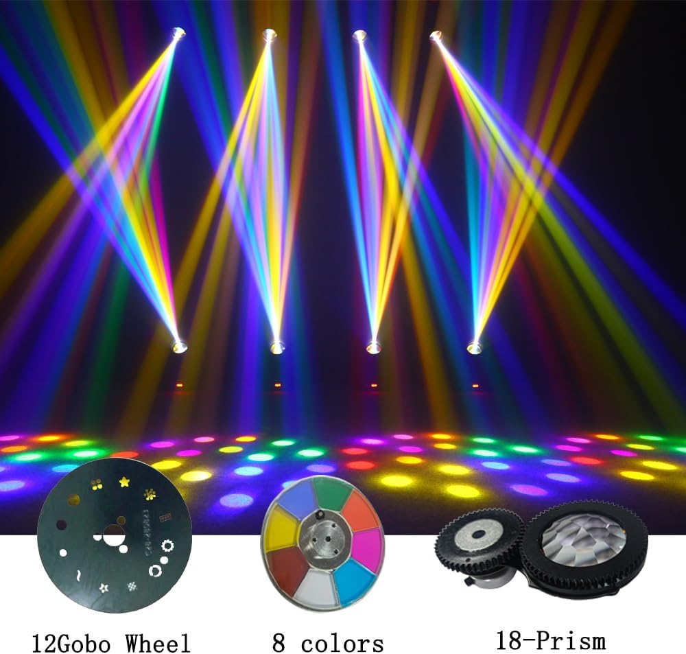 LED Moving Head Light 200W Beam+Spot+18 Rotating Prisms+Rainbow 12 GOBO 8 Color Effect Dj DMX Stage Light Effect Light Disco Bar