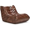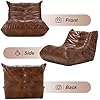 Hobestluk Giant Bean Bag Chair Lazy Floor Sofa, Memory Foam Fireside Sofa for Adults, Big Beanbag Faux Leather Armless Chair for Living Room Bedroom Dorm Office (Brown, Single)