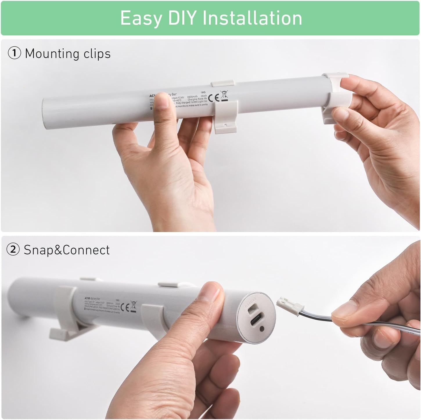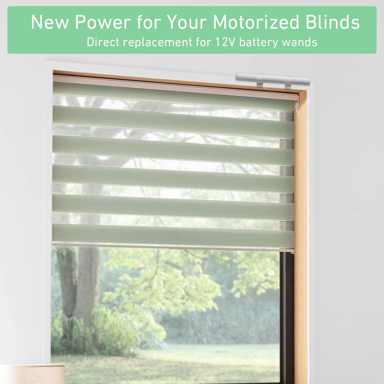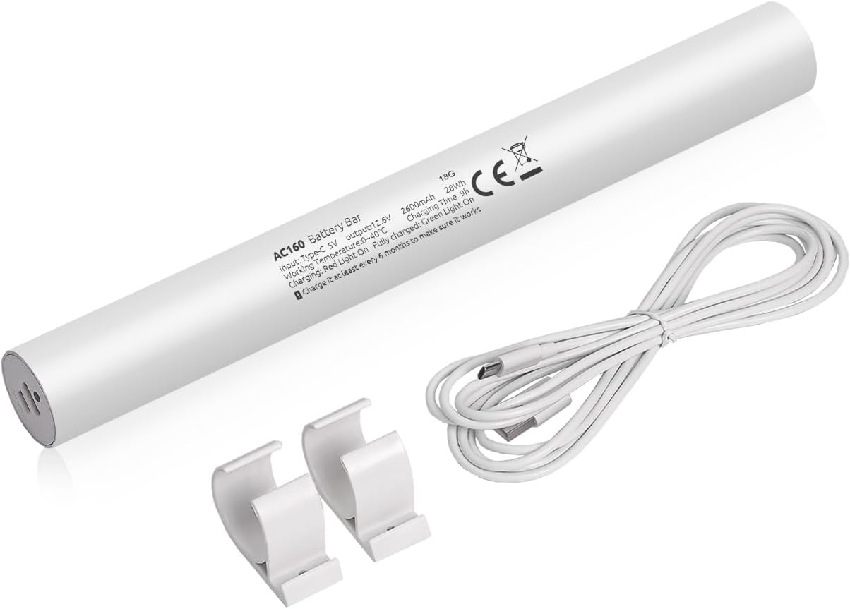 Rollerhouses 12.6V Lithium Ion Rechargeable Pack Wand - Power and Charge Blinds, Shades Curtains - 2600mAh, Output 5V 1A, Easy to Install - Includes Wall Mounting Clips,Type-C Cable
