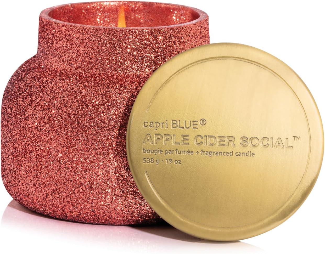 Capri Blue Signature Glam Jar Candle - Long Lasting Soy Wax Blend - Glitter Candles for Home Scented with Luxury Holiday Scents (Apple Cider Social, 19 oz)