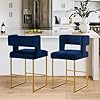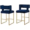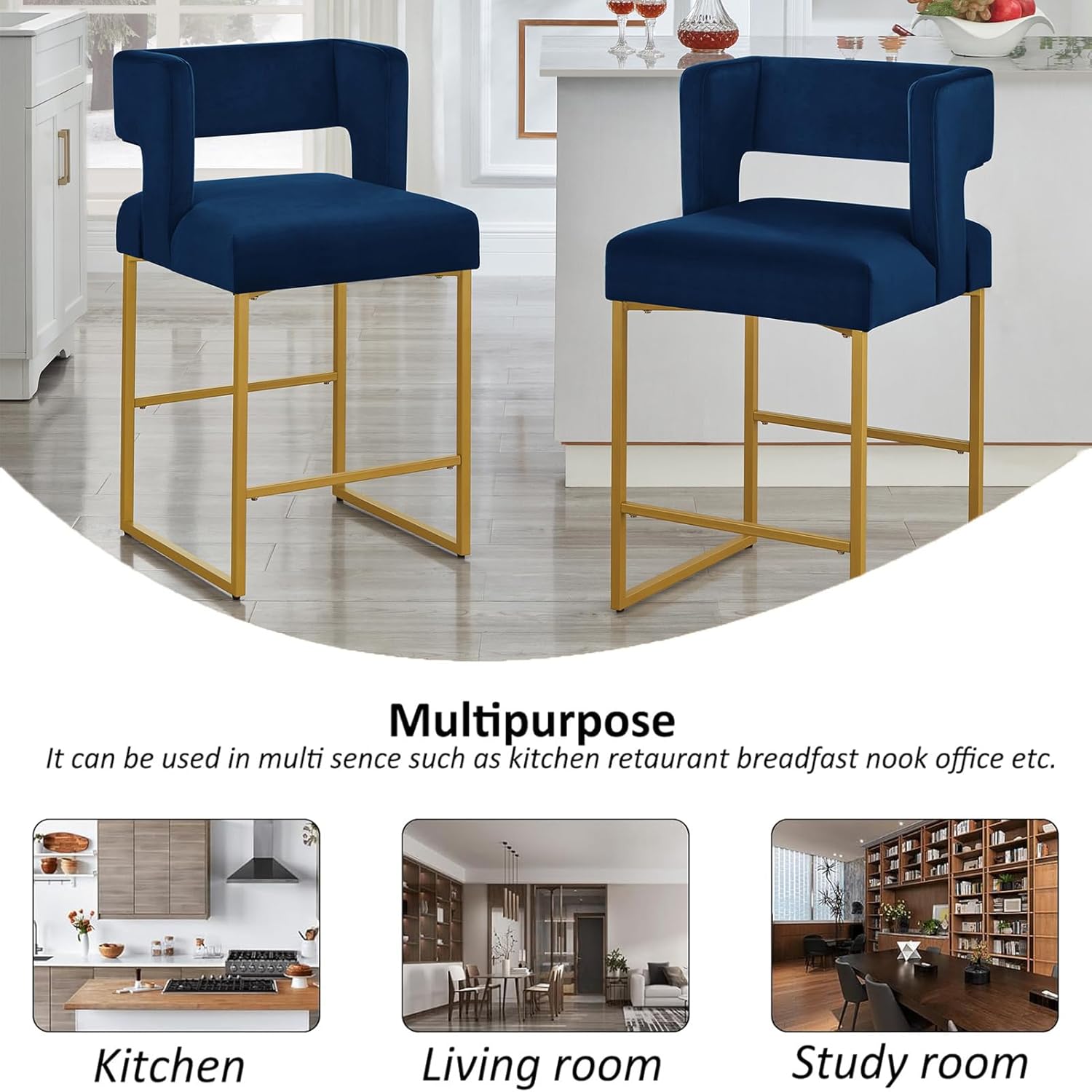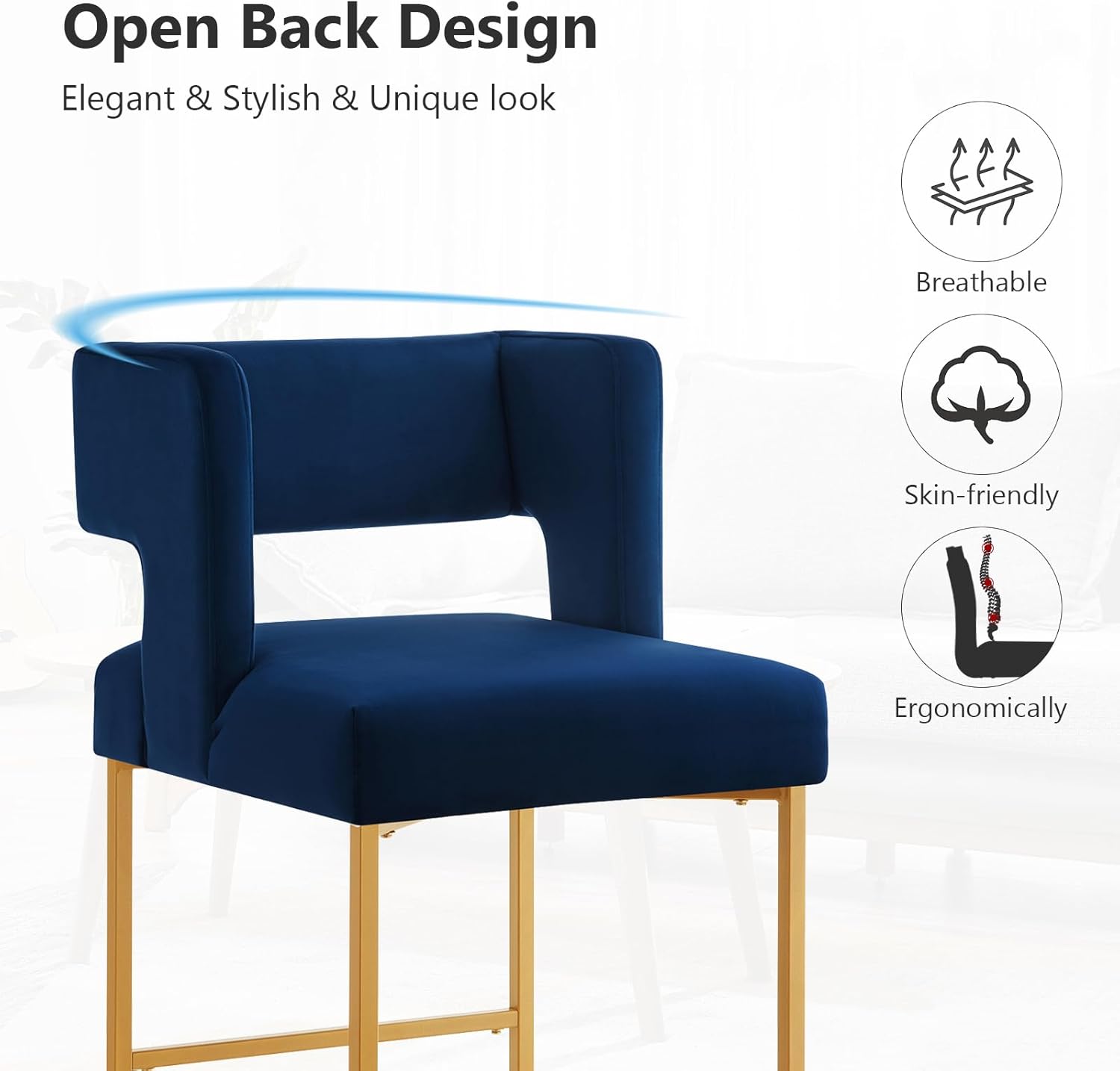 26" H Counter Height Bar Stools Set of 2, Modern Velvet Bar Stools with Square Open Backrest and Gold Metal Frame, Kitchen Counter Stools for Island, Home Bar, Pub(Navy+Gold)