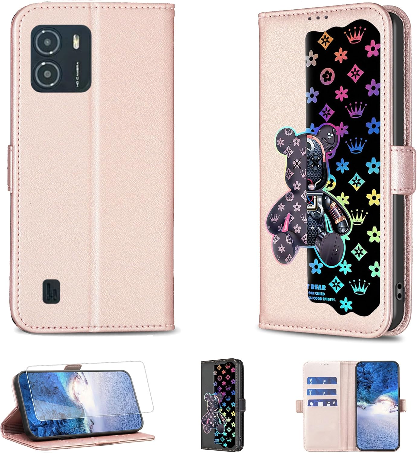 Case Compatible for Maxwest Astro A63 Phone Case Flip Stand Cover [with Tempered Glass Screen Protector] JXX-Pink