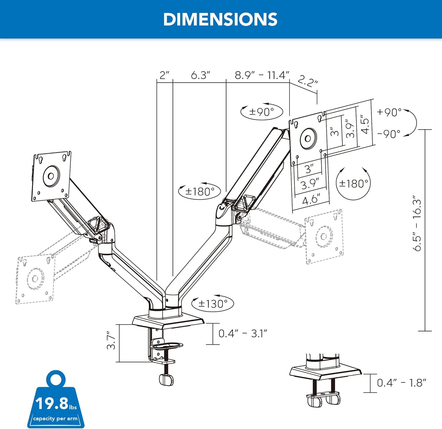 Quality Promise: This Mount-It! full motion dual monitor arm comes with a Lifetime Warranty and our knowledgeable and responsive US-based customer support team is available to answer any questions you may have during standard business hours