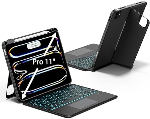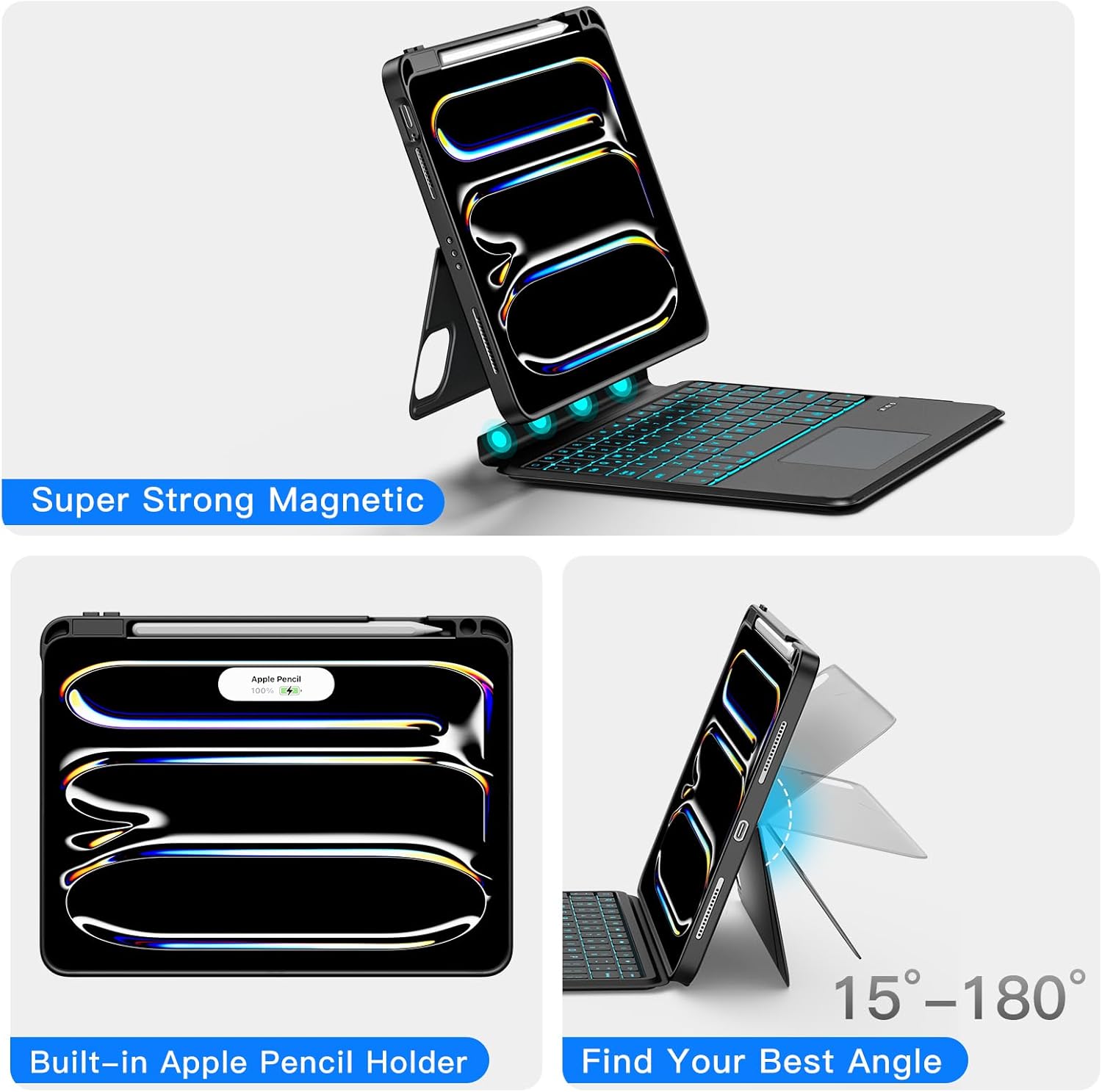 JUQITECH Touchpad Keyboard Case for iPad Pro 11 M4 2024, Magic Multi-Touch Trackpad Backlight Wireless Keyboard for iPad Pro 11-inch Magnetic Portrait Kickstand Smart Soft Case with Pencil Holder