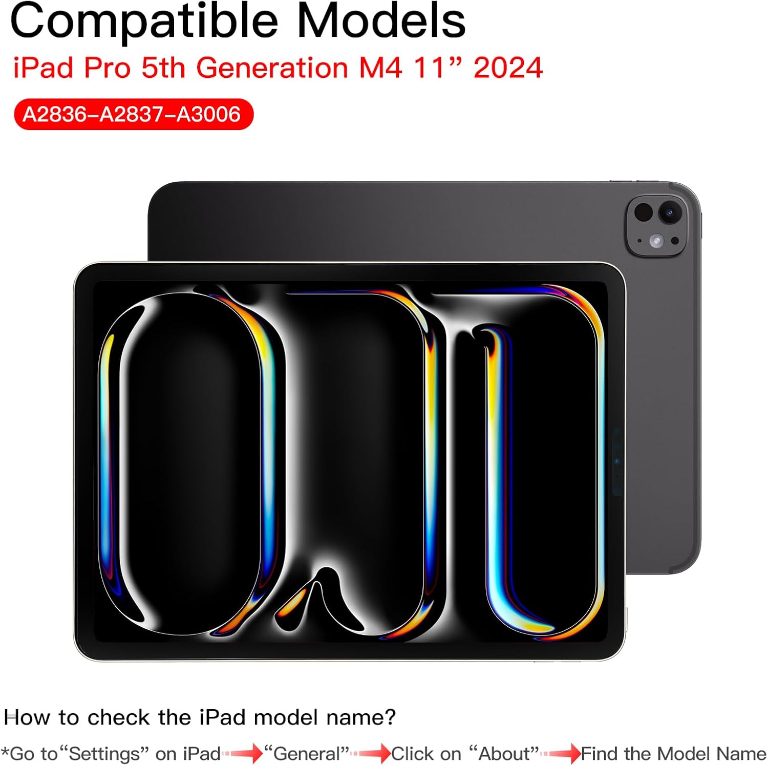 💐【Touchpad Keyboard Case for 2024 iPad Pro 11(M4)】Only compatible with iPad Pro 11-inch M4 2024 5th Generation. Model: A2836 A2837 A3006. Note: iPad or Apple Pencil Pro NOT INCLUDE. Teclado para ipad pro 11 2024