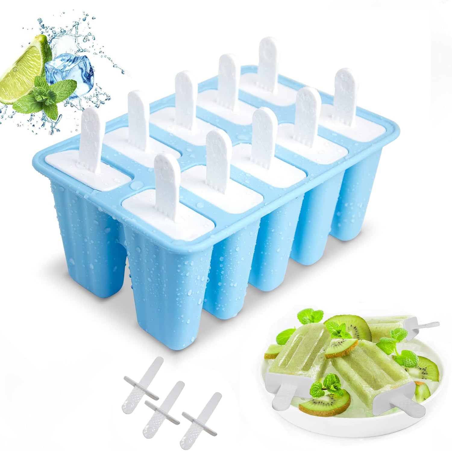 Popsicle Molds, 10 Pieces Silicone Popsicle Molds with Sticks BPA Free Ice Pop Molds Reusable Easy Release Ice Popsicle Maker, Blue
