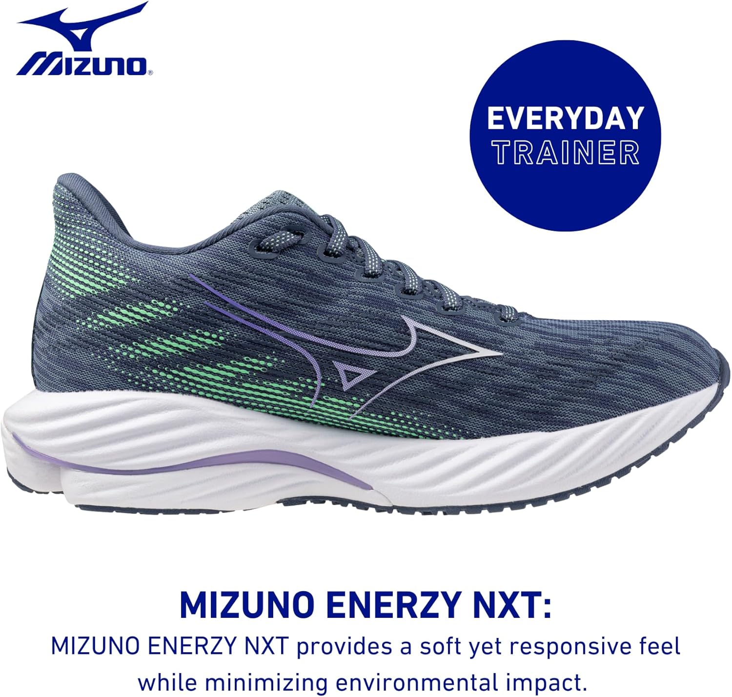 Experience incredibly smooth transitions in the Wave Rider 28. Updated to include a breathable Jacquard Air Mesh while MIZUNO ENERZY NXT provides a soft yet responsive feel while minimizing environmental impact. Propulsive drive and supreme cushion mesh together in this ultimate daily trainer.