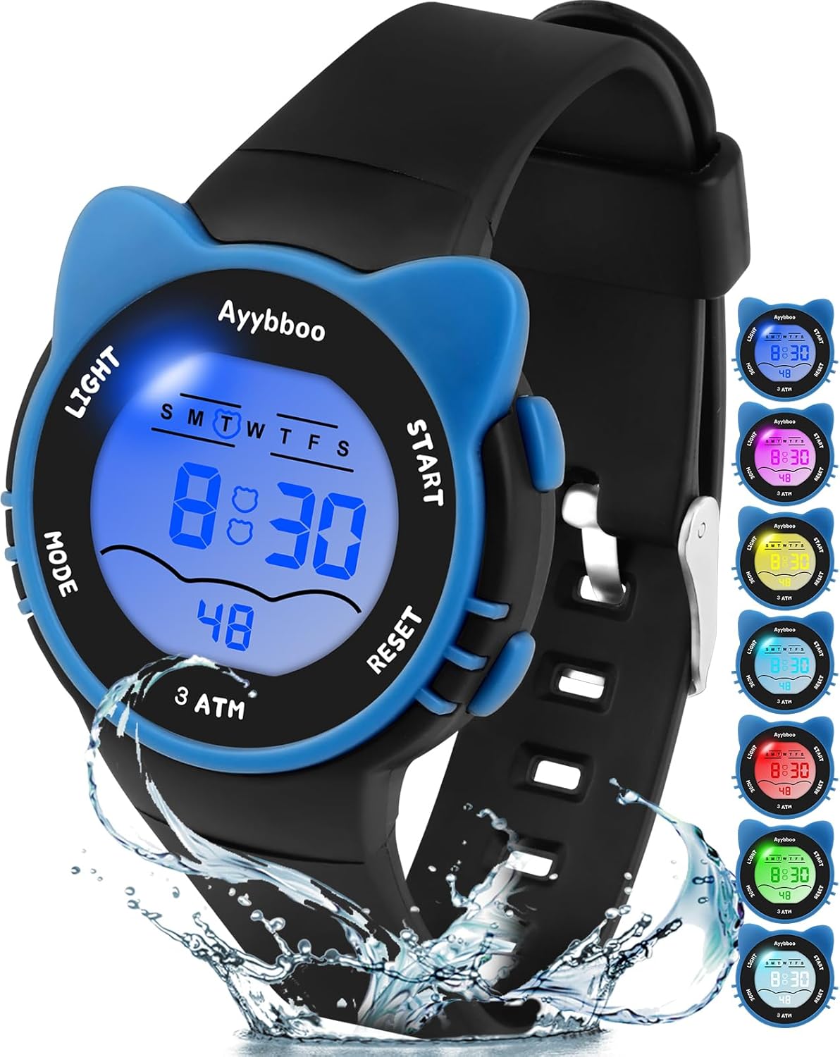 Kids Digital Watches for Girls Boys, 7 Color Lights Waterproof Cute Wristwatches for Kids with Alarm Stopwatch, Great Present for Girls Boys Ages 5-13