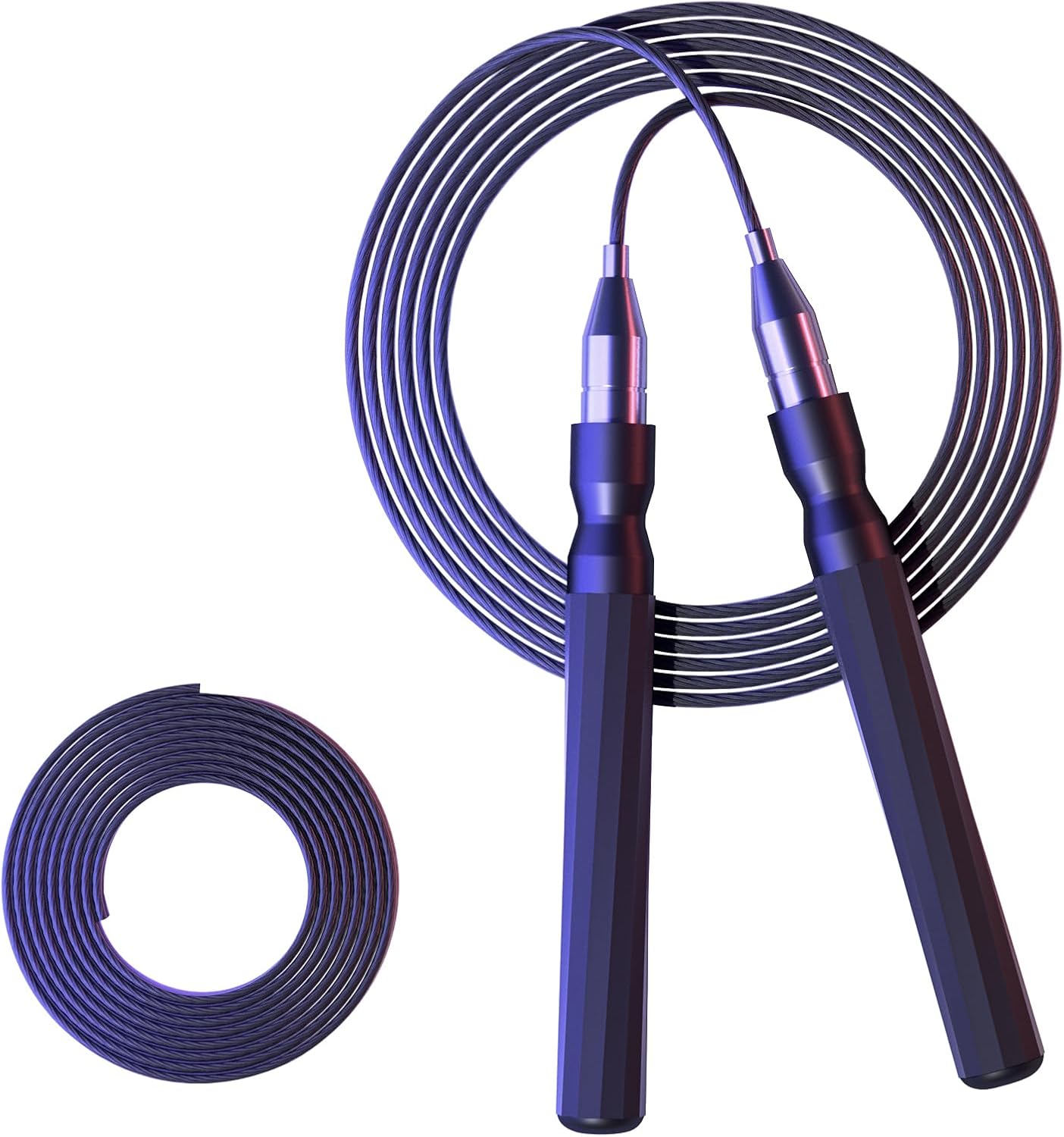 Perfect for Sports Fitness:This skipping rope With speed bearings, 2 aluminum handles and 2 coated wire ropes is ideal for double unders, boxing, fitness, conditioning, and more, at home, in the gym, or wherever you like to travel
