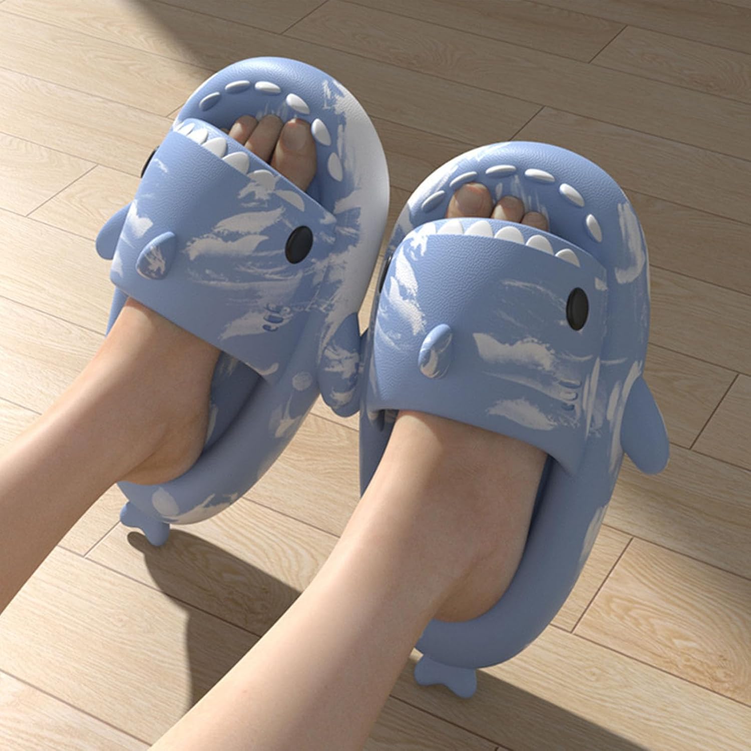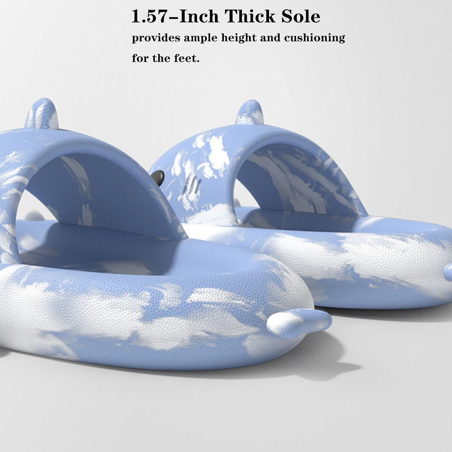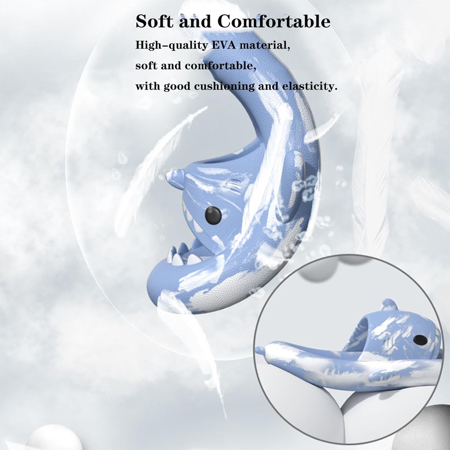 🐬【High-quality Material】: The whole shark cloud slippers are made of healthy and durable EVA material, soft and comfortable, with good cushioning and elasticity. Can be put on and taken off easily. The open toe design is very breathable, so you don't have to worry about your feet getting hot and sweaty.