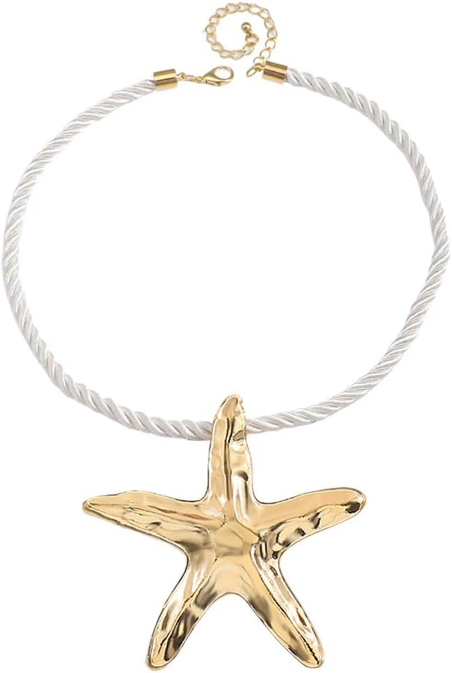 Dtja Large Starfish Pendant Necklace for Women Girls Handmade Hammered Star Shaped Ocean Sea Marine Life Rope Chain Adjustable Necklaces Fashion Chic Beach Holiday Party Jewelry 20"