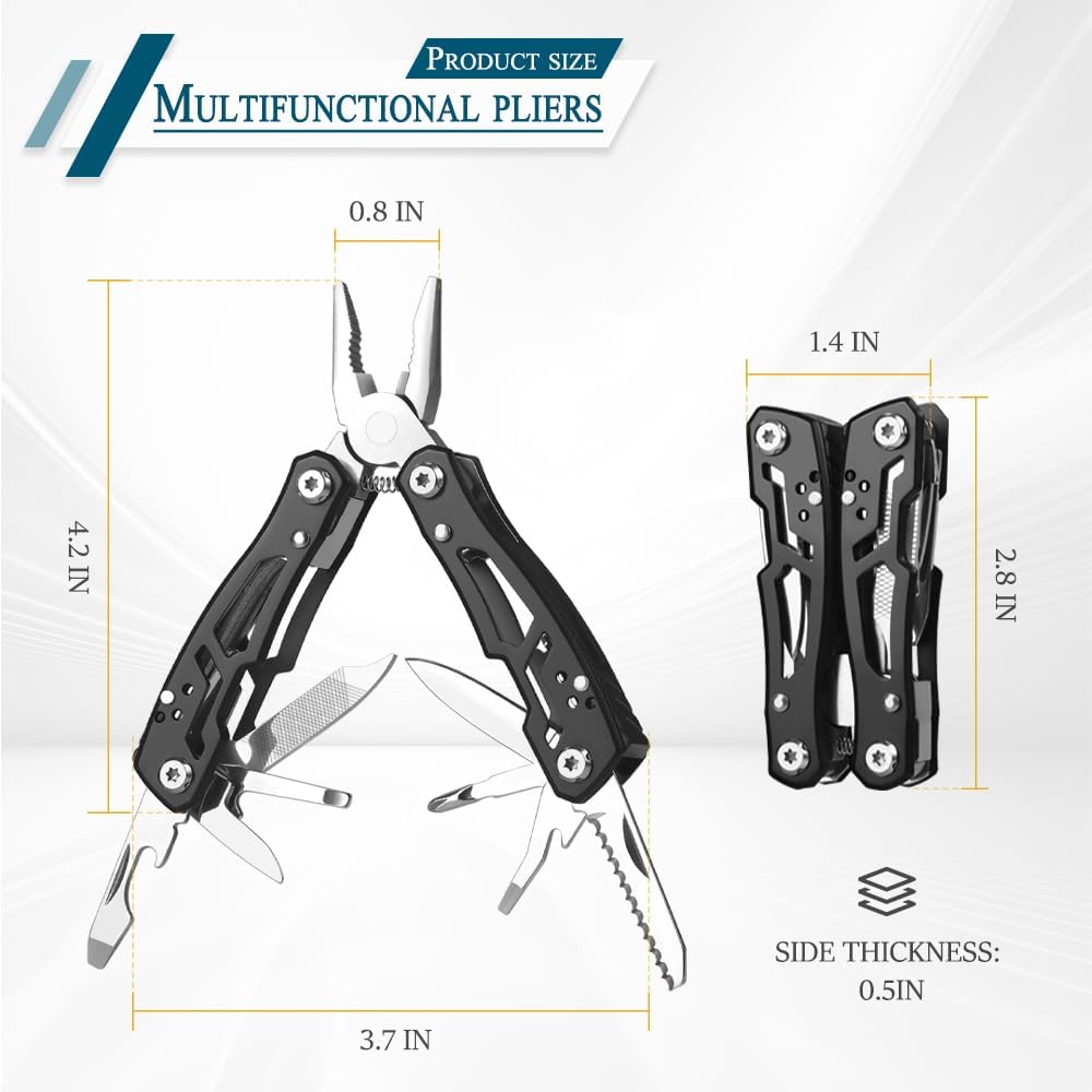 【STURDY AND VERSATILE】Our multitools for men gift won't break easily like the snow multi-tool or other multi-tools, making your friends and family feel sorry for it. Our products are made of high quality stainless steel, sturdy and durable, it can be widely used to repair all kinds of furniture, such as computers, TVs, bicycles, etc.. It can also be used for camping, fishing, and even all aspects of life.