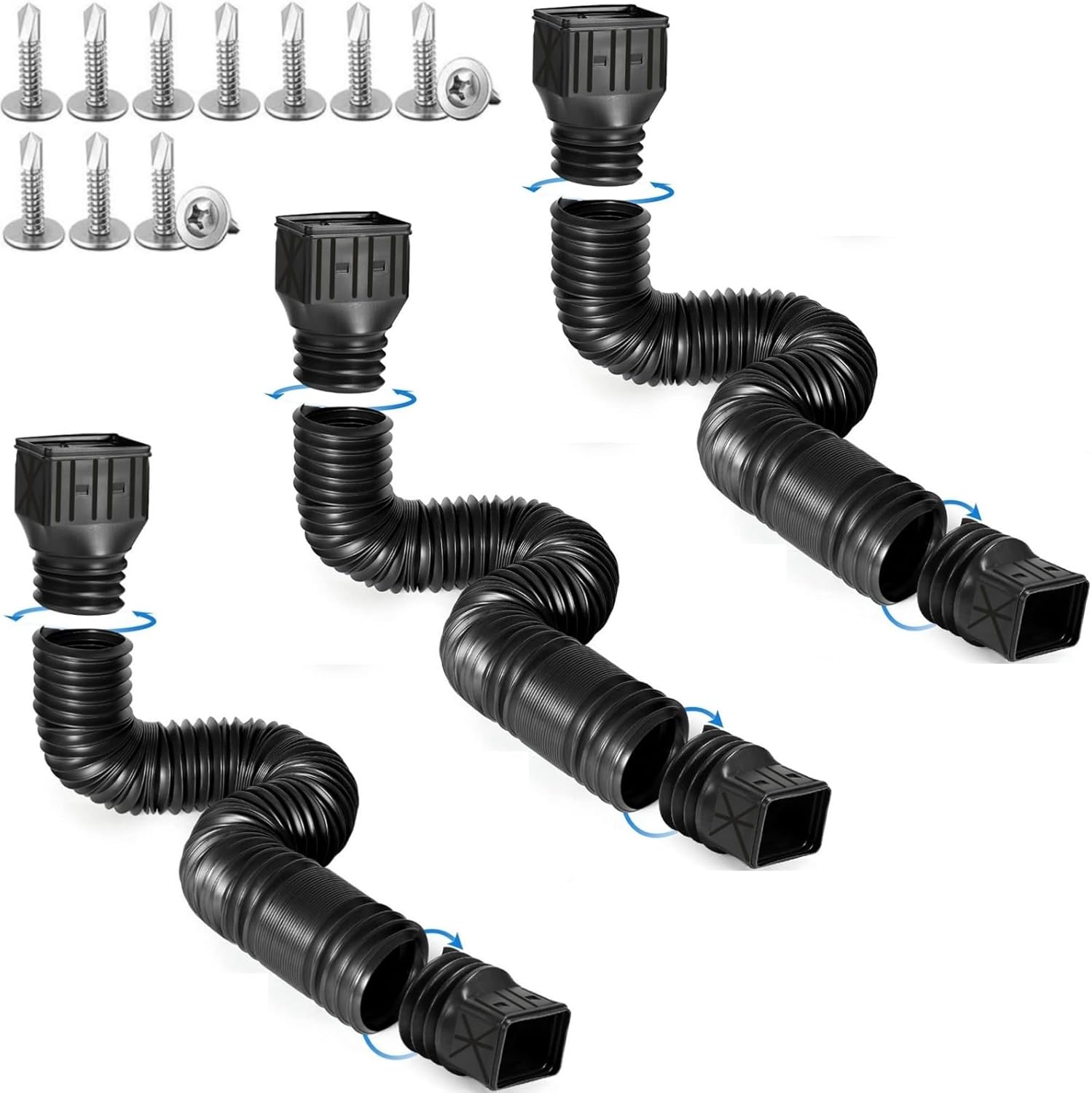 3 pack Flexible Rain Gutter Downspout Extensions,Drain Downspout Extender,Gutter Extension Flexible,Down Spout Drain Extension Pipes,Extendable from 21 to 60 Inches (3pcs black)