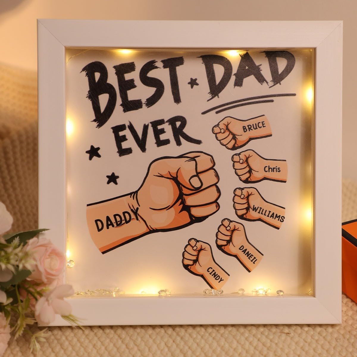 Personalized Dad Light Shadow Box with Kids, Best Dad Ever with Fist Bump Kids, Custom Dad Wooden Frame Box, Dad Frame Sign, Gift for Dad, Papa, Grandpa, Him, Husband, Birthday, Christmas