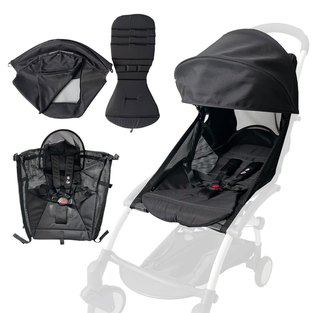 Baby Stroller Accessories 6+ Clothe Replacement Kit Compatible with Babyzen YOYO2 Strollers - Waterproof Fabric - Stroller Canopy, Seat Cushion & Seat Base (Cool Summer Set)