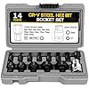 This set includes 14 different sizes of socket wrench head, suitable for various mechanical repairs and assemblies. Crafted from high quality vanadium steel, these sockets are durable and reliable.