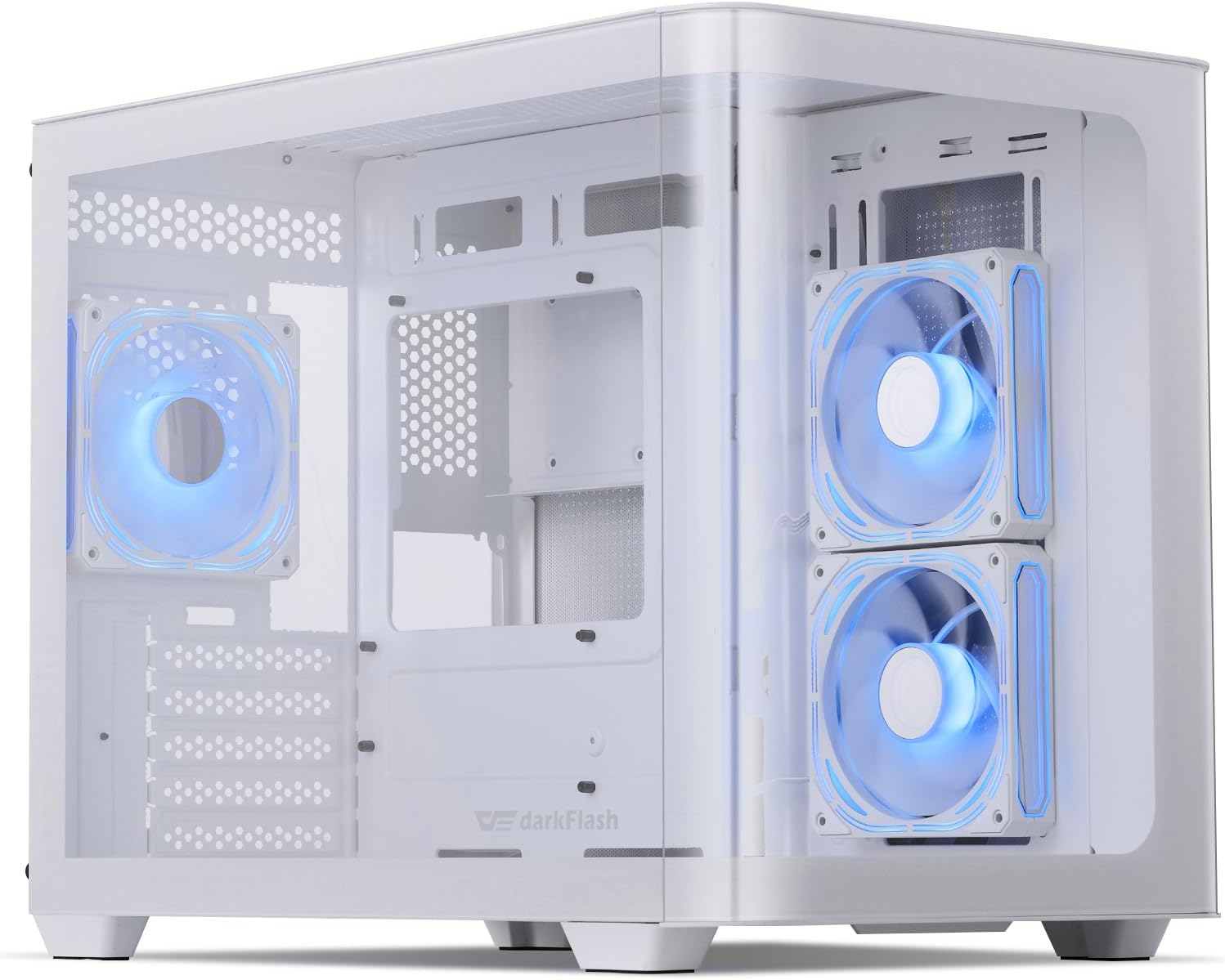darkFlash Micro-ATX Gaming PC Case, MATX PC Case with 3 x 120mm ARGB Fans, Panoramic View Dual Tempered Curve Glass Computer Case, USB 3.0 Port, Supports Dual 360mm AIO, White(DPW90M)