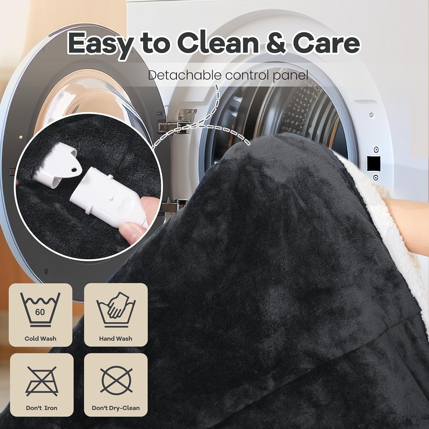 Safe & Easy Clean: It has overheat protection ensure your safety during normal use. It just need toss it in the washing machine for effortless cleaning. Only remember to unplug the controller before washing to maintain the longevity of the blanket. Very easy to maintain this machine washable heated blanket