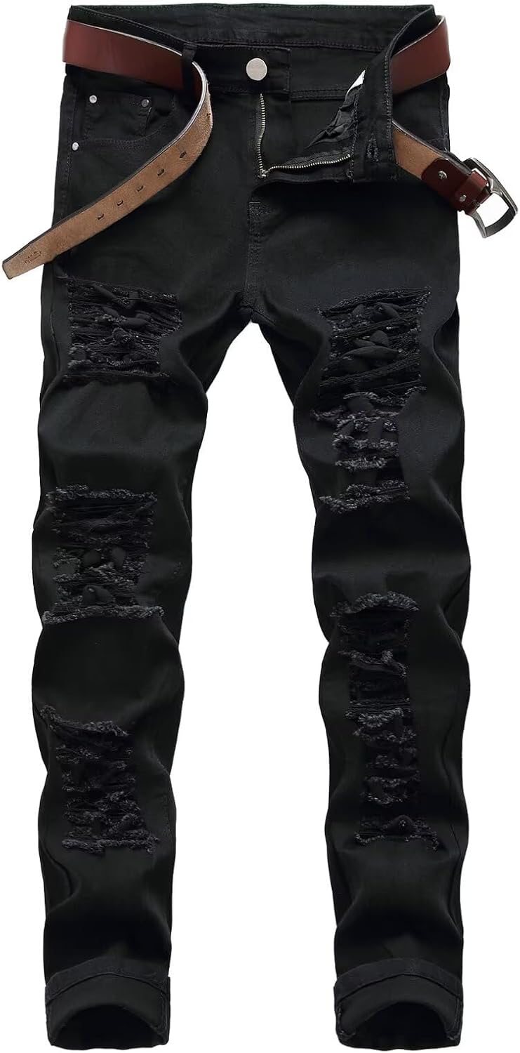 Men's Ripped Skinny Slim Fit Stretch Distressed Destroyed Jeans Denim Pants
