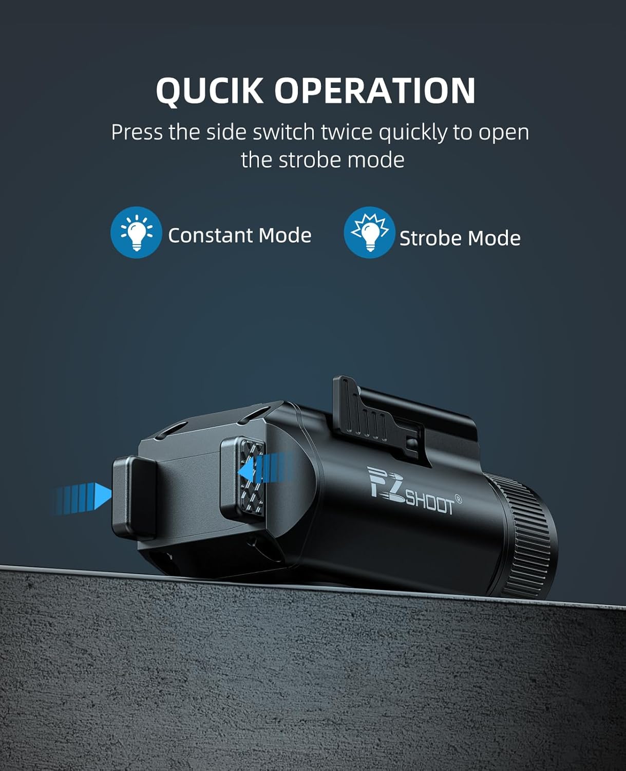 Secure Mount Compatibility: This light is designed to securely mount on the rail, and it is compatible with GL rail with slot (except GL26 42 43) and 21mm 1913 Pl rail.
