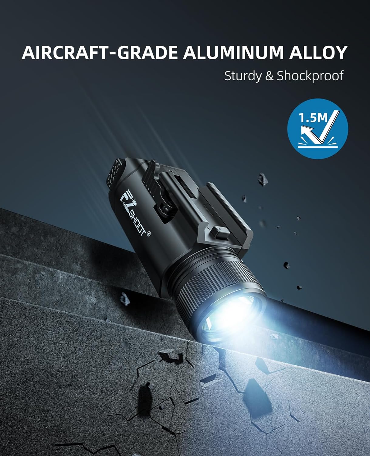 Sturdy Material: The EZSHOOT flashlight is made of sturdy aluminum and has passed the 1.5-meter drop test.