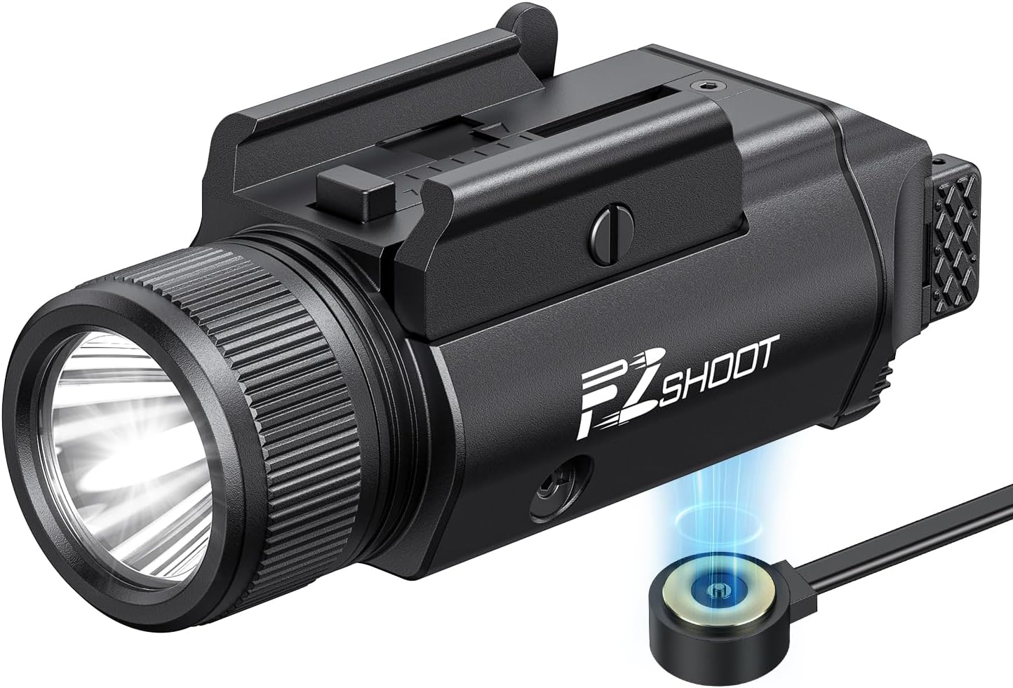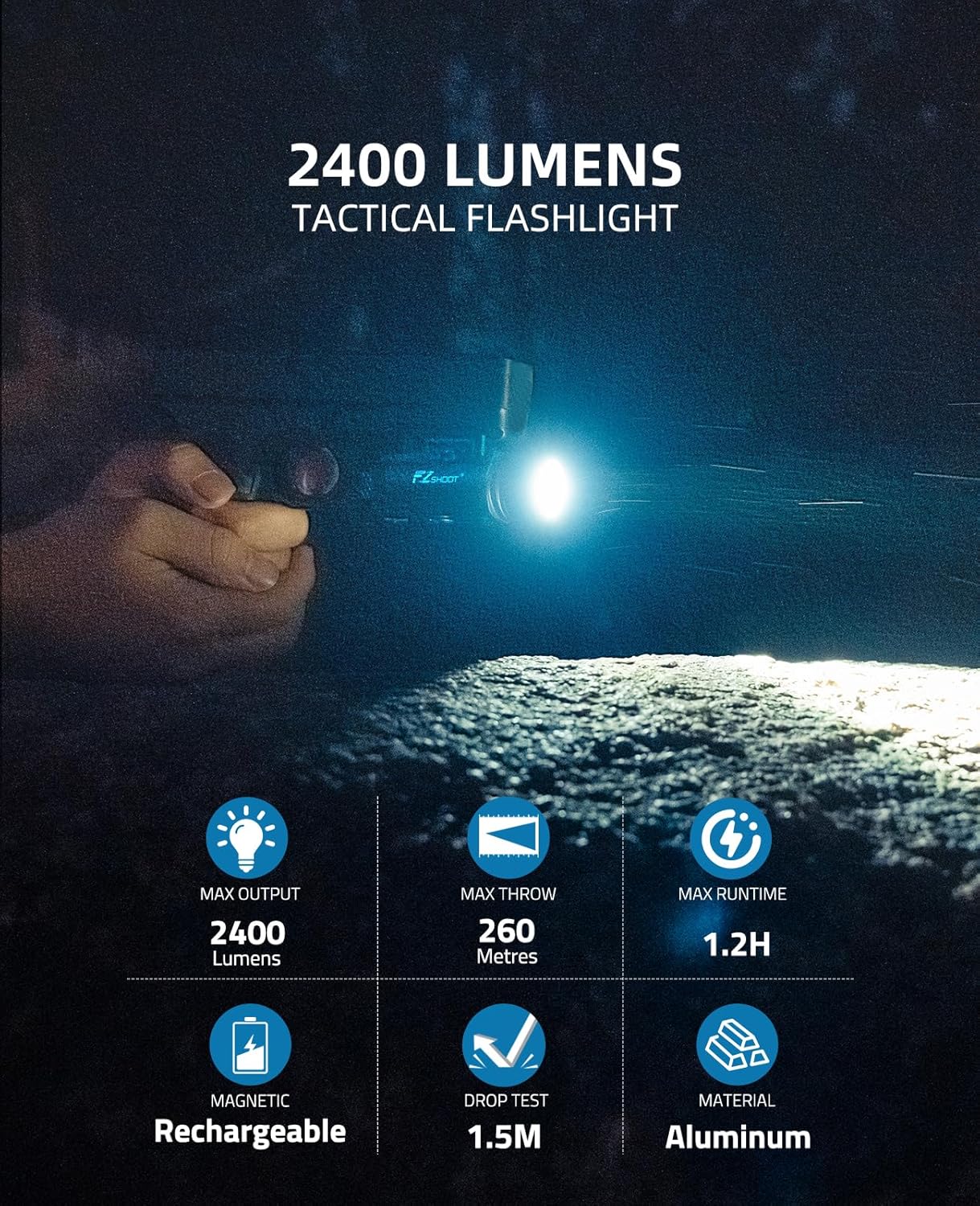 EZshoot 2400 Lumens Flashlight with Strobe Mode, High Lumen Magnetic Rechargeable Led Tactical Light with Quick Install Design, Light with Adjustable Slide Rail for Picatinny GL Rail